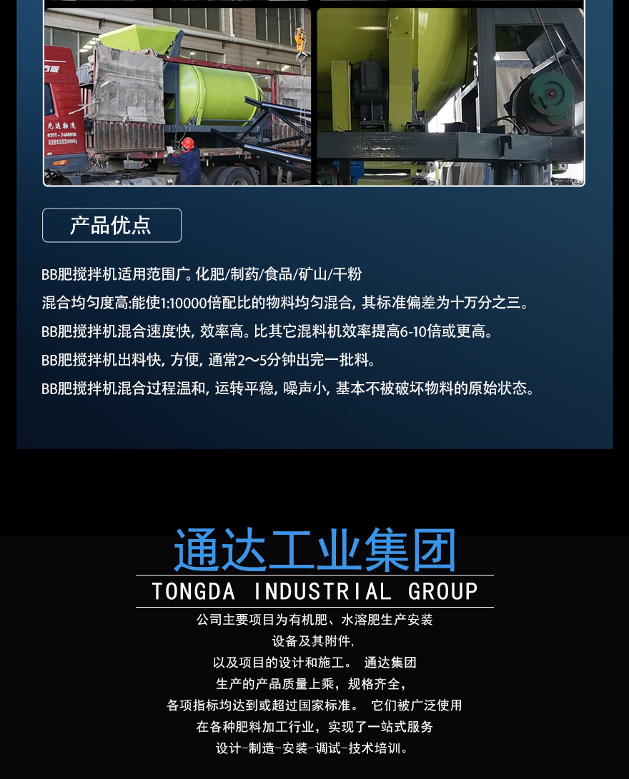 產品簡介:BB肥攪拌機廠家通達工業集團供應各種規格BB肥攪拌設備,年產5000,10萬噸有機肥成套設備,想知道BB肥攪拌機多少錢,請致電18530928888.