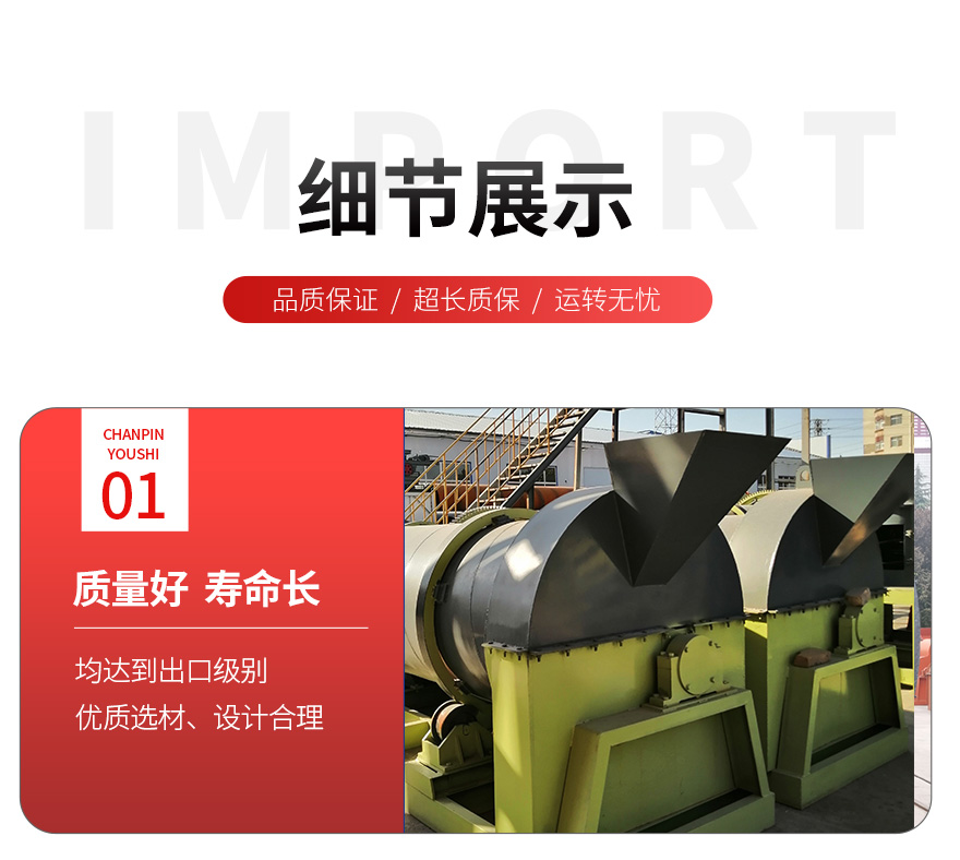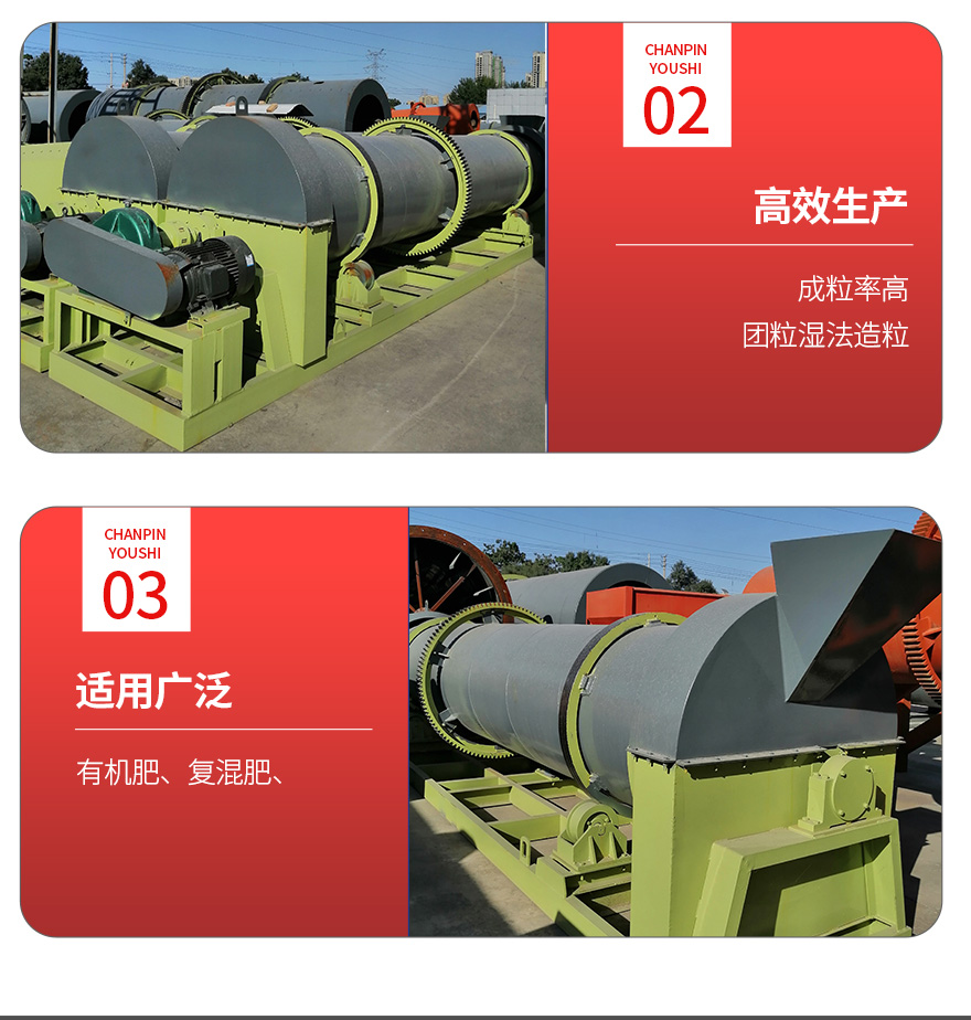 產品簡介:有機肥轉鼓復合造粒機(又稱為三合一有機肥造粒機)是一種可將物料制造成特定形狀的成型機械。轉鼓復合造粒機是有機肥、復合肥生產設備中的關鍵,適用于冷、熱造粒以及高、中低濃度大規模生產。
